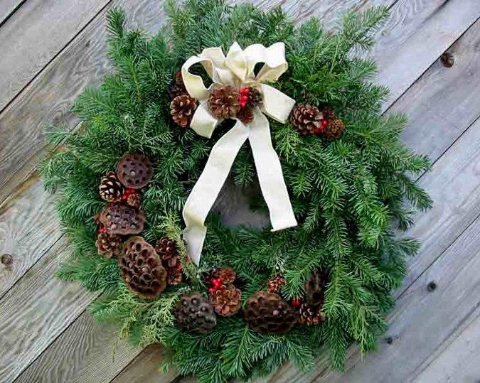 Home / Holiday Wreaths / Premium Wreath with White Velvet Bow Zoom Premium Wreath with White Velvet Bow$50.00 – $63.00 Elegant white velvet ribbon, lots of cones and lotus pods Size Choose an option20"22"24"Clear Premium Wreath with White Velvet Bow quantity Add to cart SKU: N/A Category: Holiday Wreaths Tags: Premium, white bow Description Additional information Description Additional information Size 20", 22", 24" Related products ConesHoliday Wreaths Rocky Mountain Cone Wreath A little piece of Majestic Rocky Mountains Four types of cones, matching bow and berries Three different sizes available Everyday WreathsHoliday Wreaths Glorious Green Wreath The long standing favorite eucalyptus, two shades of green ! Holiday Wreaths Premium Wreath with Red Velvet Bow Lots of cones, lotus pods and berries available in three sizes, red velvet ribbon Everyday WreathsHoliday Wreaths Plum Delight Wreath Fragrant Eucalyptus, two shades of green and plum